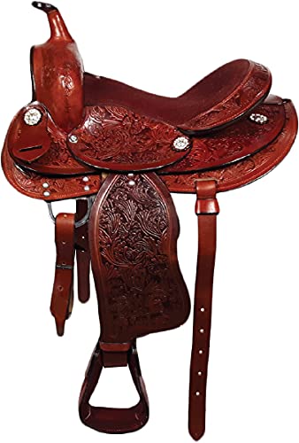 AD SADDLER Leather Western Barrel Horse Saddle Handmade Premium Racing Comfort Riding Trail Equestrian Tooled Carved for Best Horse Riding Saddle Size: 14" inches Seat