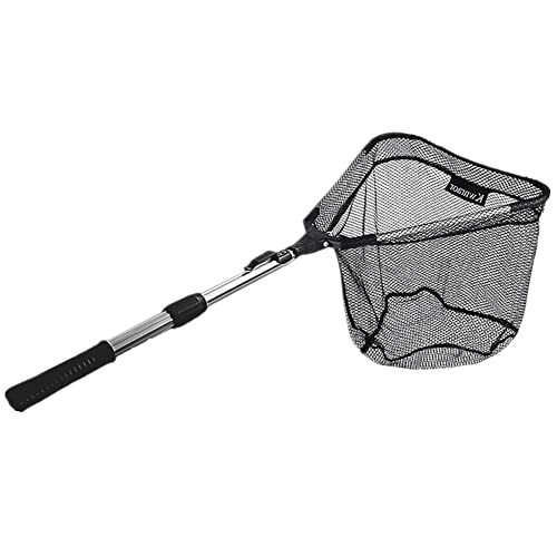 DW Fishing Foldable Telescopic Fish Landing Net – Lightweight Aluminum Pole with Non-Slip Rubber Grip, Large Triangle Soft Mesh Net for Freshwater & Saltwater Fishing
