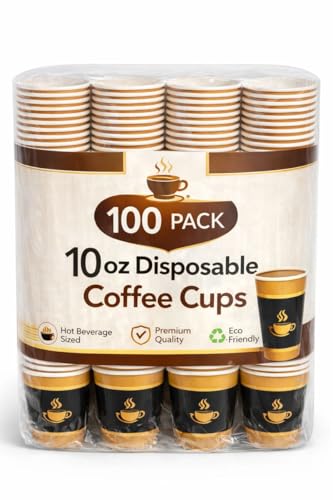 Convenient Disposables 10oz Disposable Coffee Cups, 100 Pack 鈥 Premium Paper Hot Cups, Leak-Resistant, Food-Safe, Eco-Friendly 鈥 for Coffee, Tea, Latte, Cappuccino