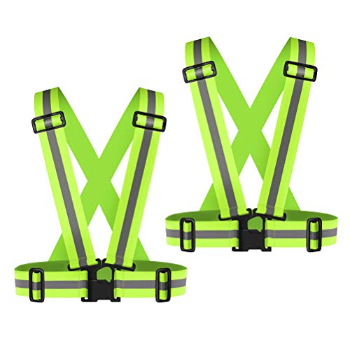 2Pack Reflective Vest Running Gear, Highly visible reflective elasticity adjustable, suitable for cycling and running (fluorescent green)