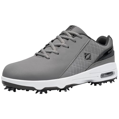 FitVille Wide Mens Golf Shoes Waterproof Spiked Golf Shoes for Men with Arch Support, Slip Resistant, 6 Non-Removable Cleats, Golf Course