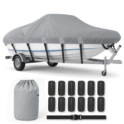 Heavy Duty 1200D Waterproof Boat Cover for 22-24ft Boats 鈥 Fits V-Hull, Tri-Hull, Bass Boat, Runabout & Fishing Boat, Anti-UV, Windproof Straps, Motor Cover & Storage Bag Included(Gray)
