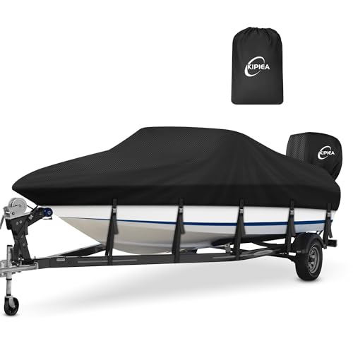 Boat Cover for Lund Adventure 1675, Watertight Marine Boat Cover All-Weather Trailerable Outdoor Protection Fits V-Hull, Fishing Boat, Runabout, Pro-Style Bass Boat,Black