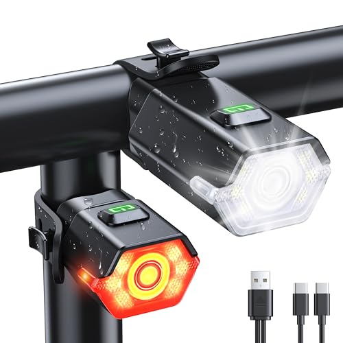 Heeykeey Bike Light for Night Riding, USB Rechargeable Bicycle Light for Ebike, Waterproof Bike Headlight with Tail Light for MTB, Off-Road, Cycling Commuting,City Riding