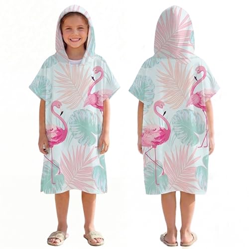 Kids Hooded Bath Towel Poncho, Quick Dry Microfiber Surf Poncho Changing Robe with Zipper, Wearable Surf Swim Towel (Yellow)