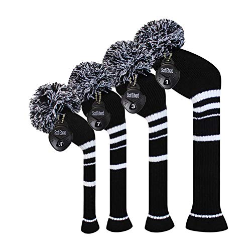 Golf Wood Headcover Set with Stripes, Driver and Fairway Club Covers, Waterproof PU Fabric with Plush Lining and Number Tags for Easy Club Identification