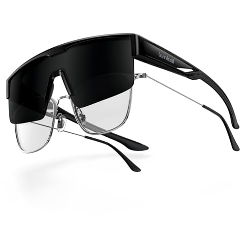 Photochromic Color Changing Glasses, Large PC Lenses, UV400, Composite Frame, Fishing/Outdoor BLACK