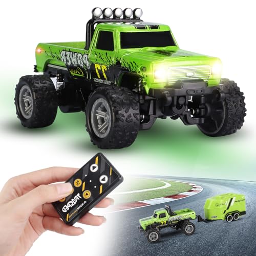 Helixsun 1/43 Scale 2.4G 4WD RC Rock Crawler Model, Featuring Simulated Lighting System, Remote Control Capability, Dual Body (Green)