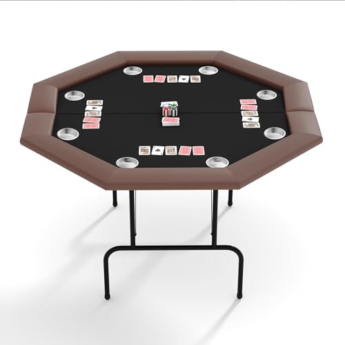 IDEALHOUSE 8-Player Foldable Octagon Poker Table - 47" Octagon Casino Table with Built-in Cup Holders, Cushioned Rail & Smooth Playing Surface for Home Game Nights, Parties, Red