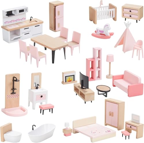 Dollhouse Furniture 4 Sets Realistic Dollhouse Furniture Set Miniature Doll House Accessories for Children Bedroom Bathroom DIY Pretend Play, Set