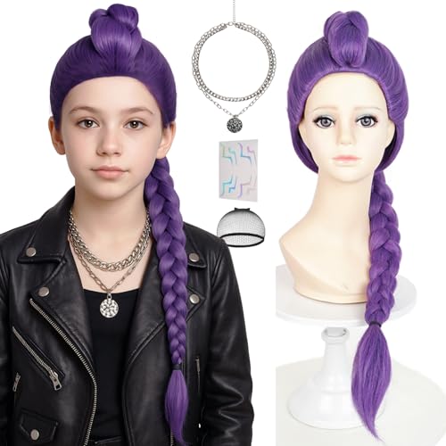 for Hunter Rumi Cosplay Wig,Long Purple Braided Cosplay Wig for Halloween,Purple Braids W-ig Halloween C-osplay Props,H-alloween Anime CostumeWig,Anime Inspired Costume W-ig with Heat-Resistant Fiber