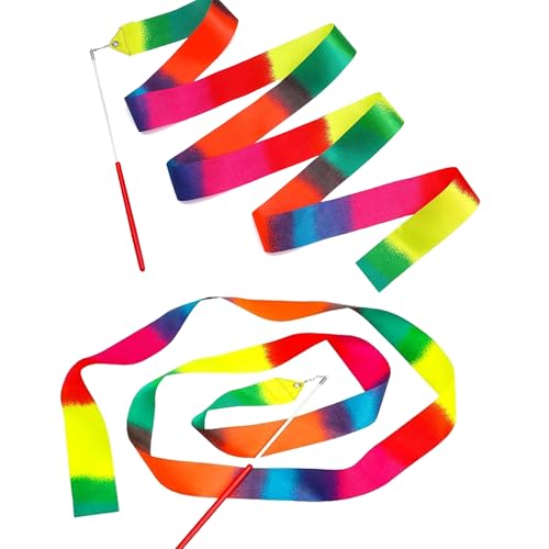 Kugliwa 16 Pcs Rainbow Dance Ribbons Girls Wrist Ribbons Rainbow Rhythm Streamers for Kids Gift Music Classroom Gymnastics Dance Decorations