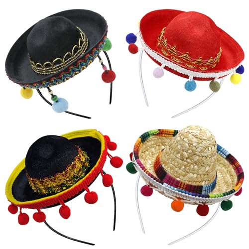 Mexican Hat,Large Festival Sombrero Party Hats - Wide Brim Cosplay Costume With Pom-Poms Spanish Outfit Accessories, Mexican