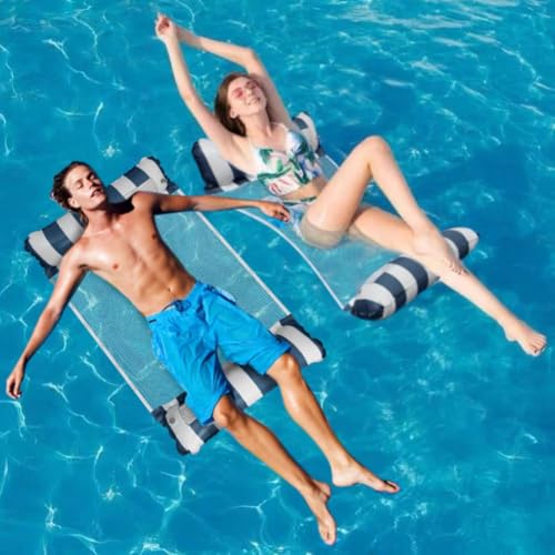 2 Pack Inflatable Pool Wammock, 4-in-1 Multi-Purpose Water Pool Float, Water Hammock for Pool Beach Vacation (Blue and Pink)
