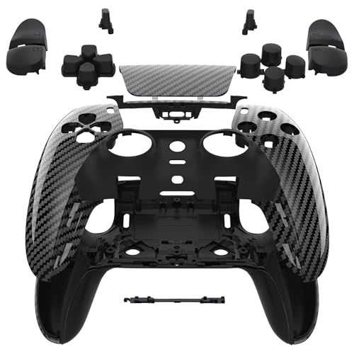 eXtremeRate Luna Redesigned Full Set Housing Shell Buttons Touchpad Cover Compatible with ps5 Controller BDM-030 040 050 060, Custom Black Replacement Top Bottom Case Compatible with ps5 Controller