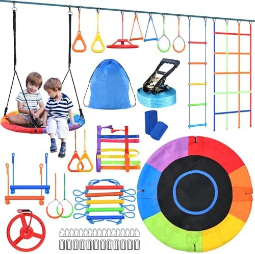 BlueWood Upgraded Indoor Playground 9-in-1 Jungle Gym Kids Climbing Toys, Waldorf Style Wooden Climber Playset with Slide, Swing, Monkey Bars, Upright/Rope Ladder, Climbing Rocks/Net/Ladder, Blue