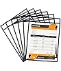 25 Pack Dry Erase Pockets Sleeves 10x13 Inches Reusable Job Ticket Holders Plastic Pocket Protector Sleeves for Documents, Classroom Teacher Supplies and Shop Tickets (Black)