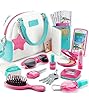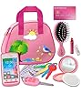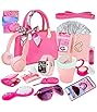 - Includes toy hand bag, sunglasses, smartphone, makeup compact, powder puff, credit card, hair brush, lipstick with cap, and keychain with keys