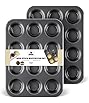 - Set of 2 muffin pans with 12 cups each (24 cups total); ideal for baking muffins, cupcakes, and more